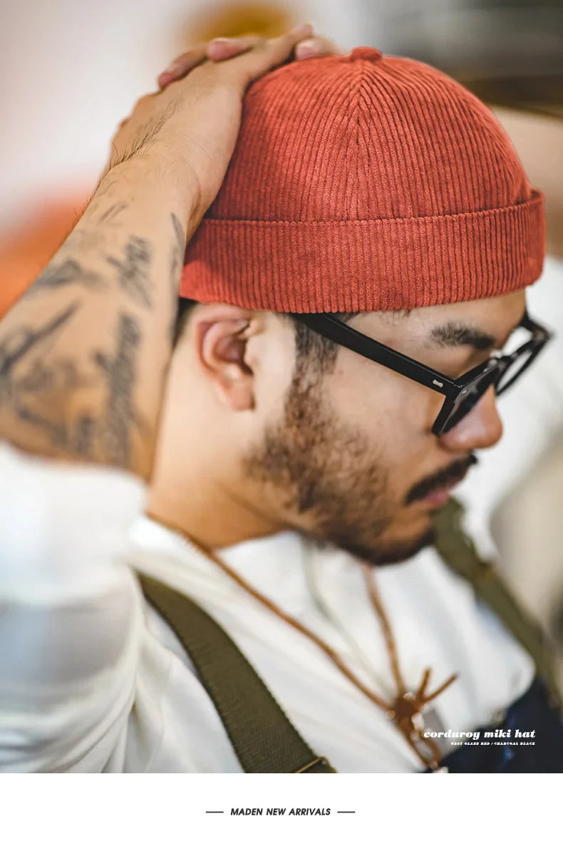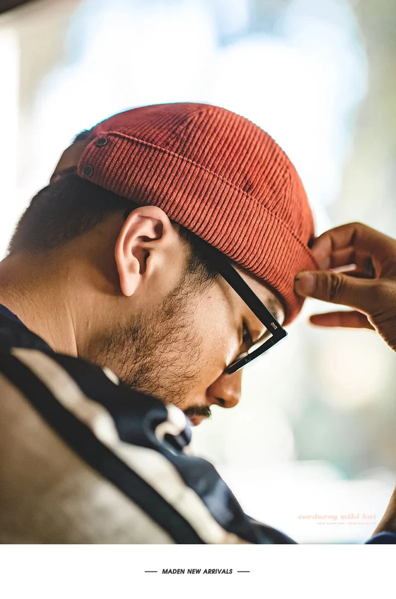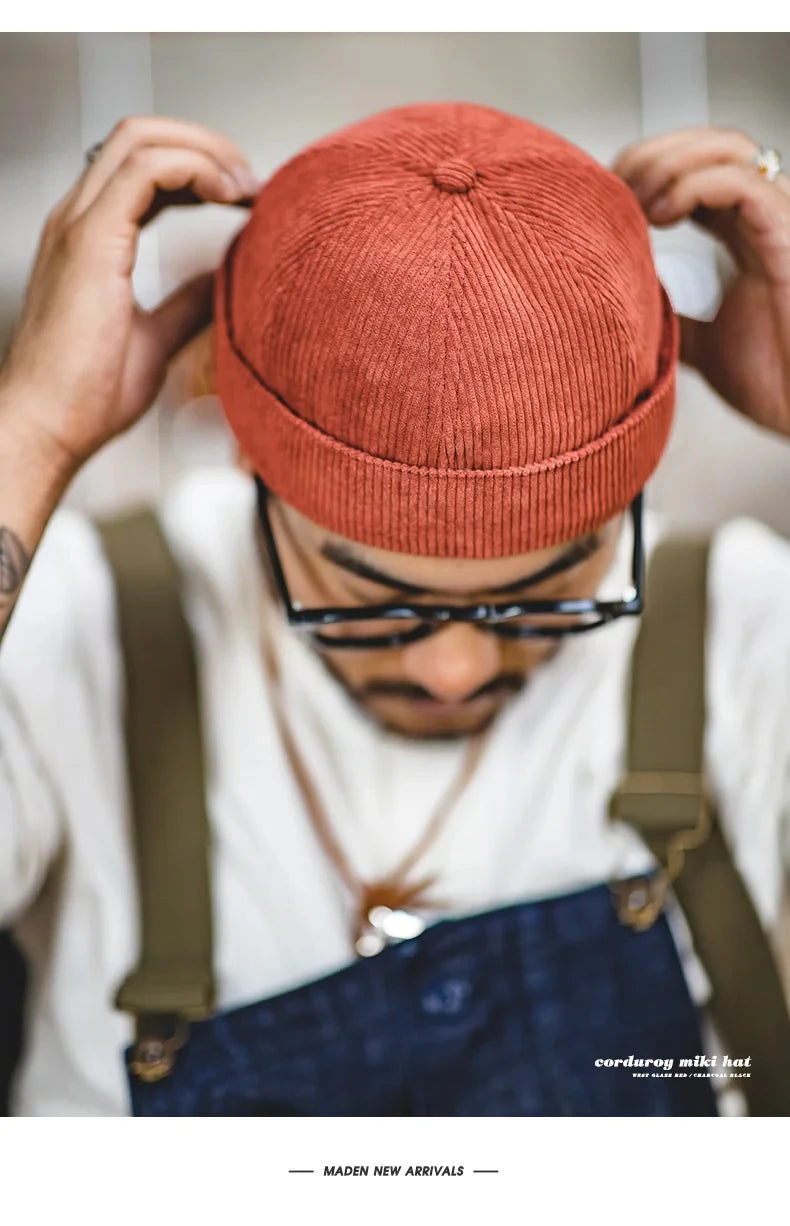This MADEN Corduroy Sailor Cap combines classic design with modern functionality. Its adjustable back strap ensures a comfortable fit, while the brimless silhouette offers a timeless aesthetic suitable for various occasions. Crafted from premium cotton corduroy, this cap is both stylish and durable, making it a perfect accessory for any casual ensemble.